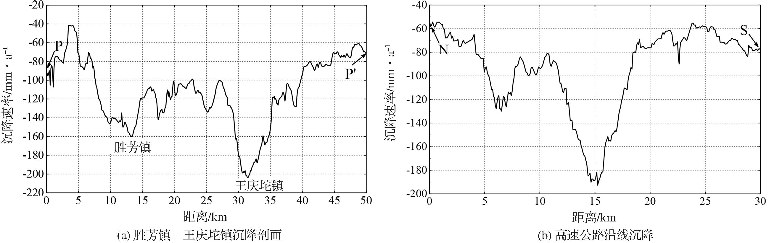 | 图10 胜芳镇—王庆坨镇及高速公路沉降剖面 |