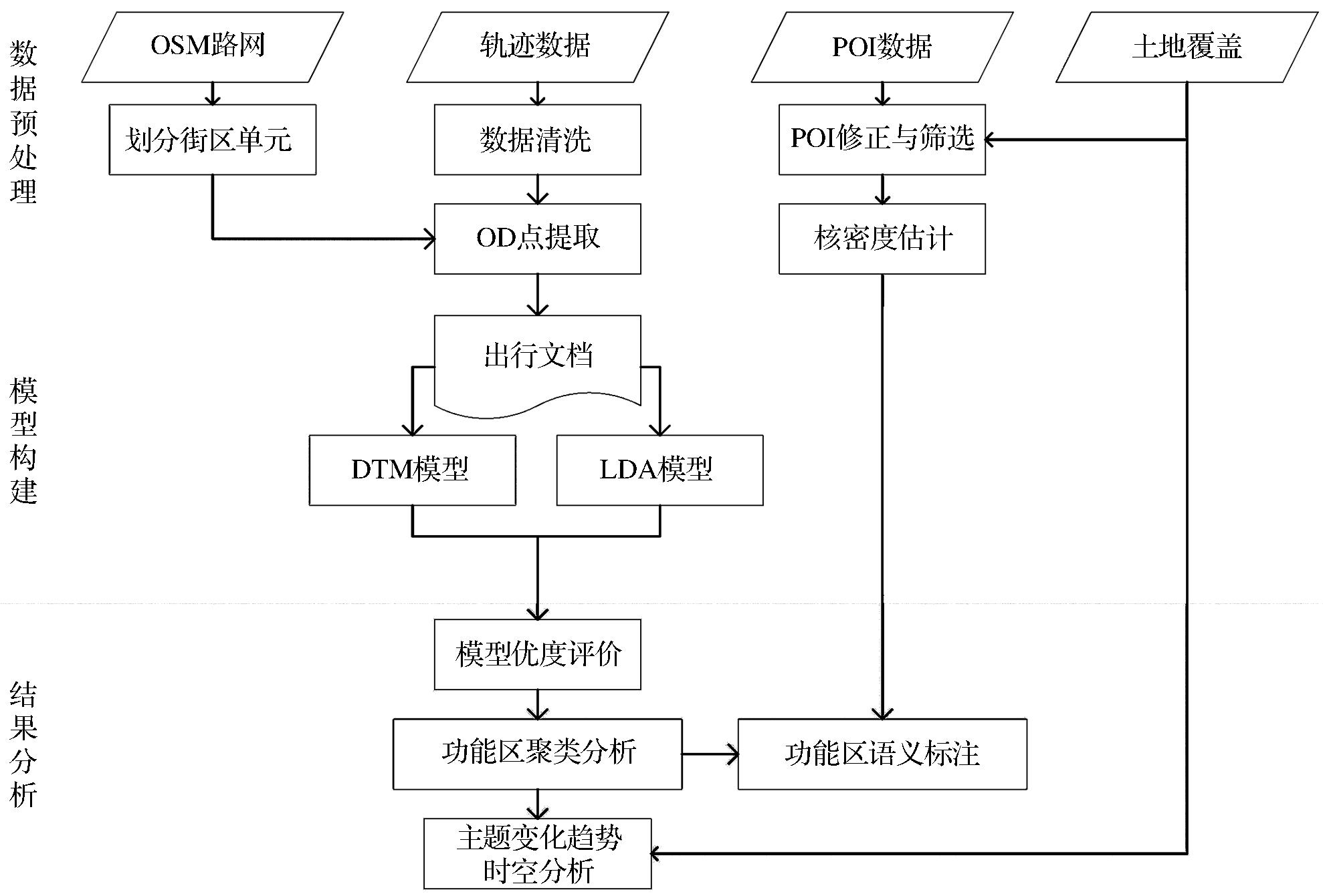 | 图2 基于主题模型的城市地块活动语义动态提取技术路线 |