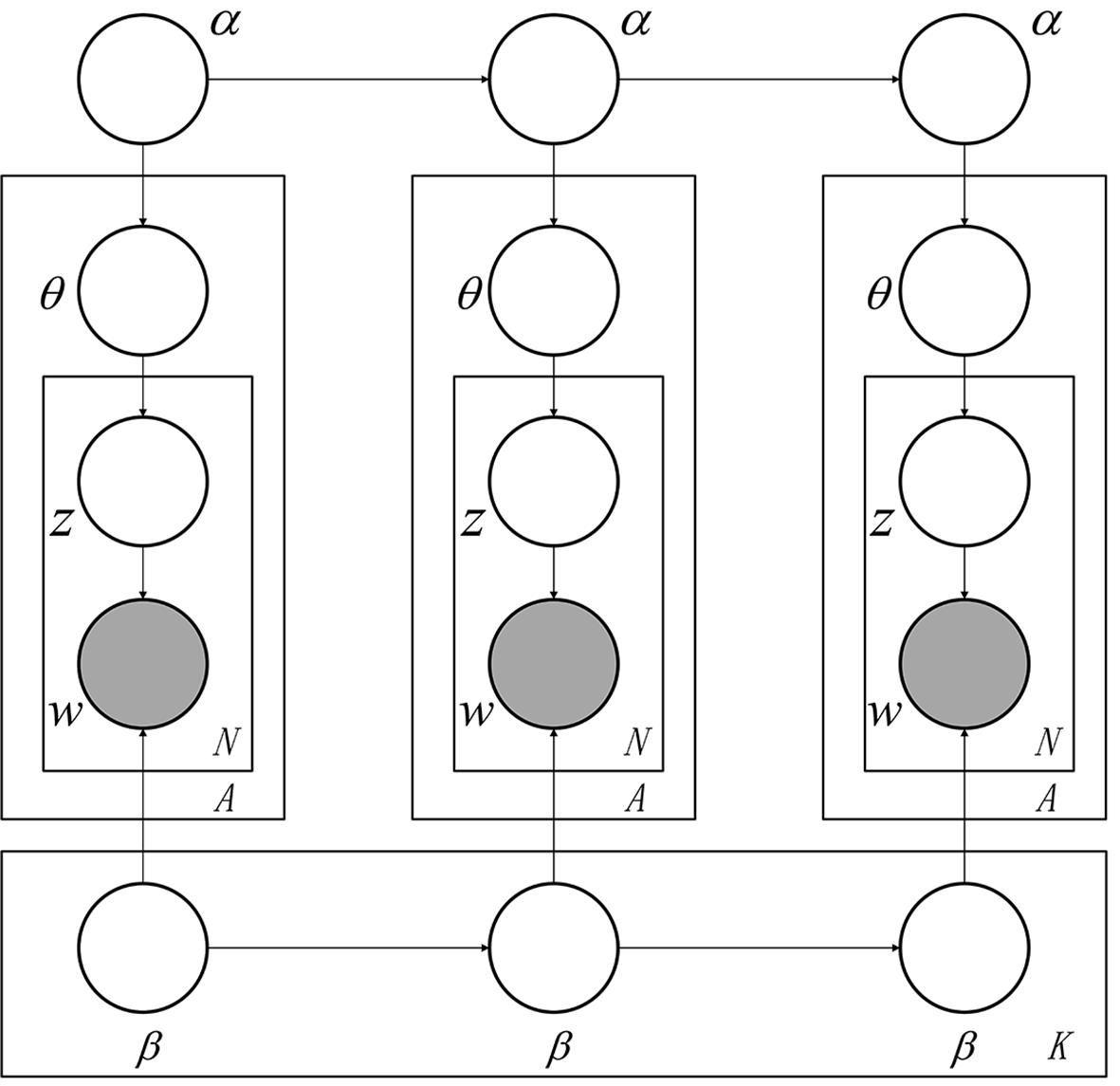 动态主题模型示意图