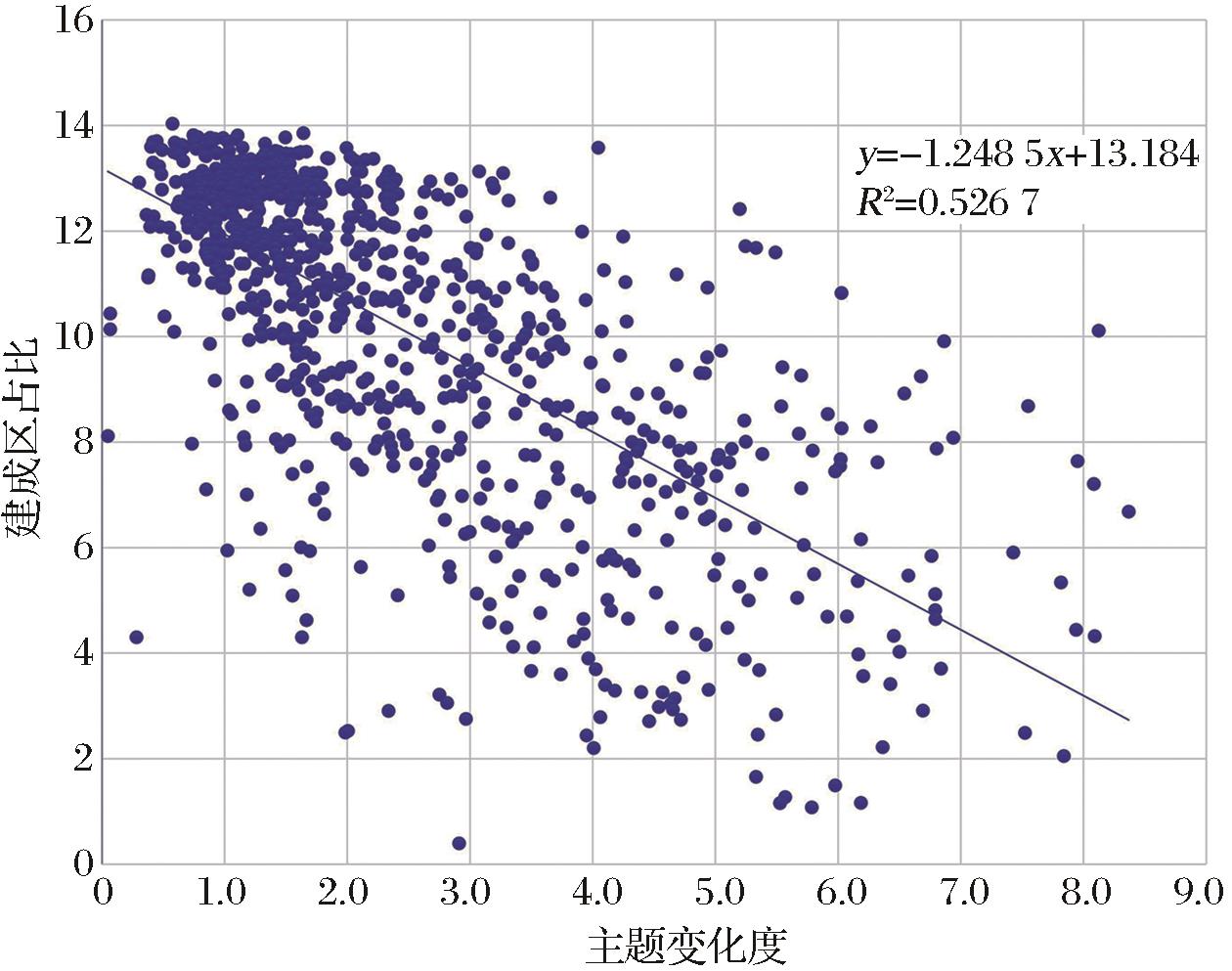 | Fig. 11 Correlation between the proportion of construction land and topic variation |