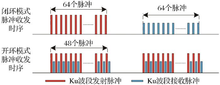 目前,合成孔径雷达高度计有两种工作模式:闭环模式和开环模式,两种工作模式的主要差别在于收发时序,图1 是闭环模式和开环模式收发时序的示意图,对于闭环模式的合成孔径高度计,其Burst周期为固定值,在发射Ku波段脉冲后,高度计在同一Burst周期内接收对应的回波信号;而开环模式的Burst周期会随着高度计星上跟踪距离的变化而变化,在发射单个脉冲后,会接收上一个Burst的回波信号,实现在同一个Burst周期内完成信号的交替收发,从而减少两个Burst发射脉冲的时间间隔,提高收发脉冲时间在Burst周期中的占比。