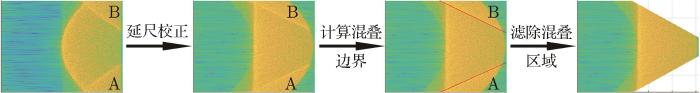 利用式(6)和卫星轨道数据计算延迟校正后的多视堆栈混叠区域边界相对于回波前沿的距离,并滤除混叠区域的回波,其数据处理的流程示意图如图3 所示。