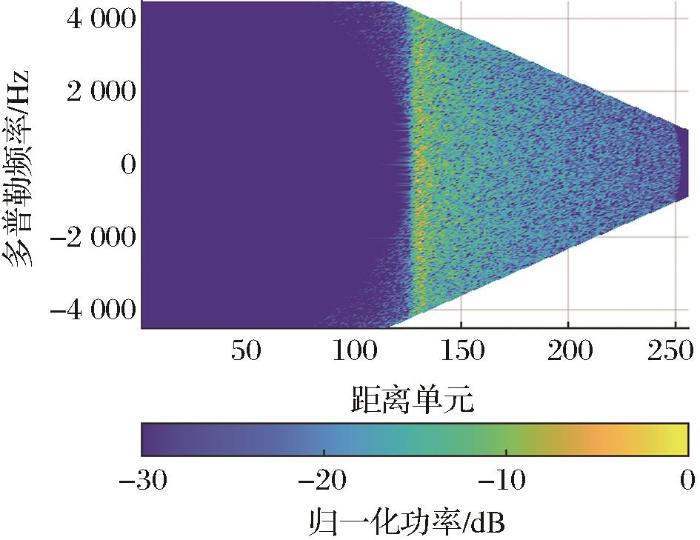 其中:P r 表示回波功率,由雷达方程确定;T r 表示回波信号时延;T 0 表示去斜参考信号对应时延;K r 表示线性调频率;ω 0 表示载波角频率;T p 表示脉冲宽度。