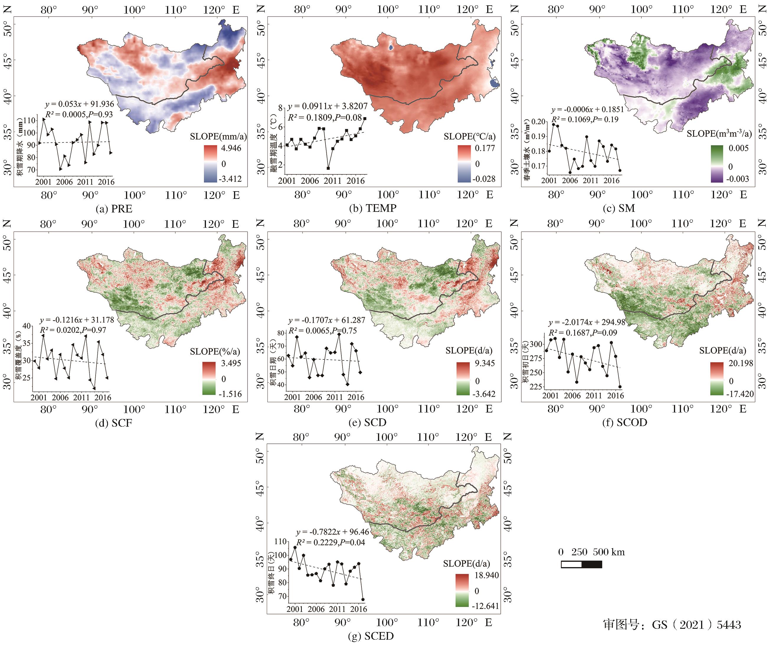 | 图5 蒙古高原2001~2018年气候、积雪、土壤水因子变化趋势 |